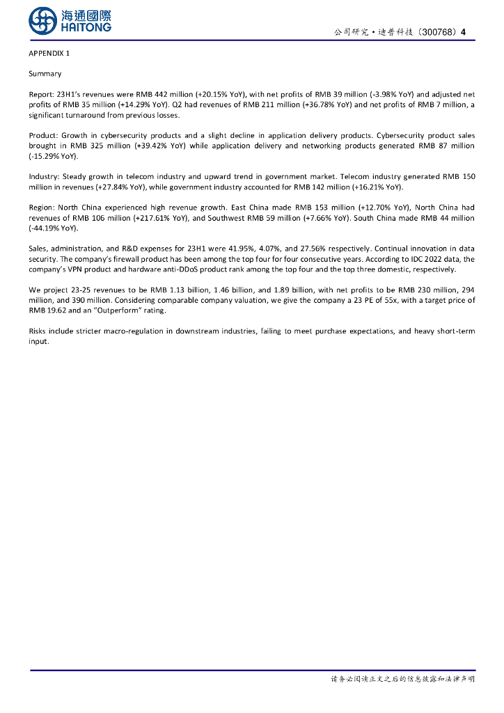 海通国际:迪普科技(300768)-公司半年报:Q2经营同比表现显著改善,网安产品增长突出.pdf