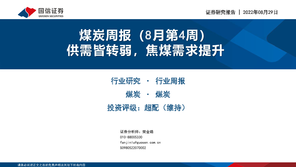 国信证券:煤炭周报(8月第4周):供需皆转弱,焦煤需求提升.pdf