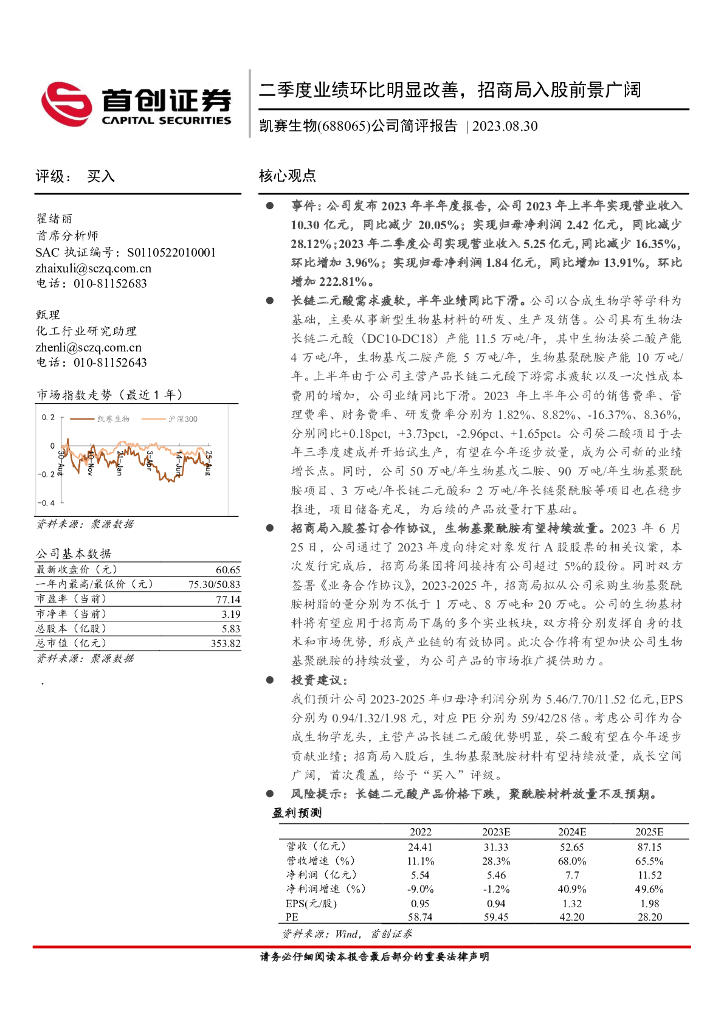 首创证券:凯赛生物(688065)-公司简评报告:二季度业绩环比明显改善,招商局入股前景广阔.pdf
