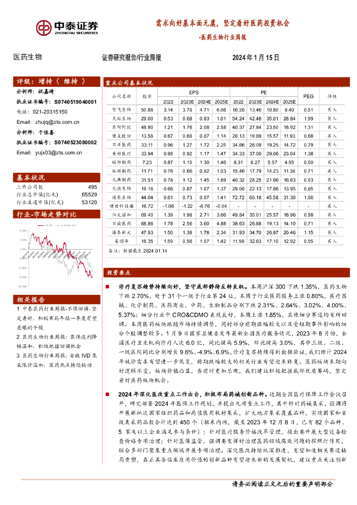 中泰证券:医药生物行业周报:需求向好基本面无虞,坚定看好医药投资机会.pdf