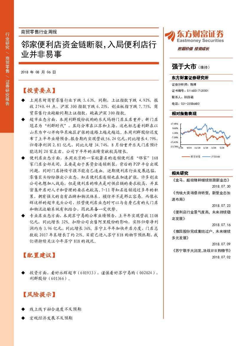 东方财富证券:商贸零售行业周报:邻家便利店资金链断裂,入局便利店行业并非易事.pdf