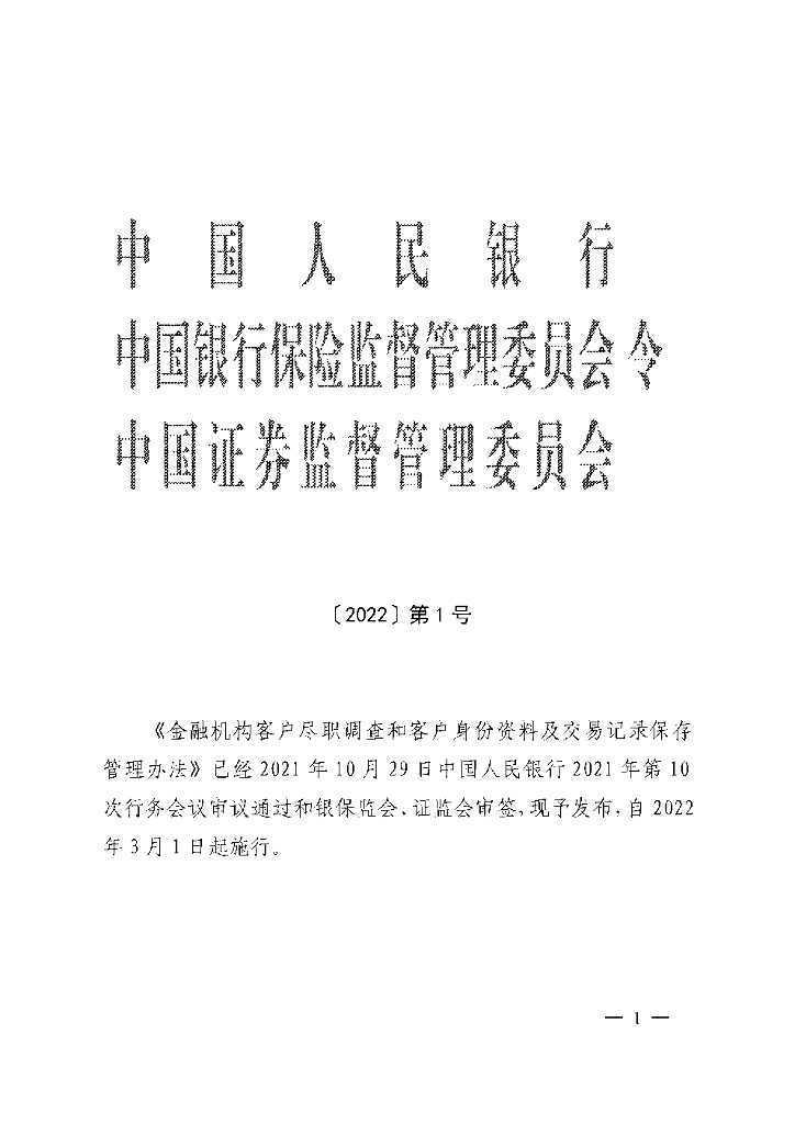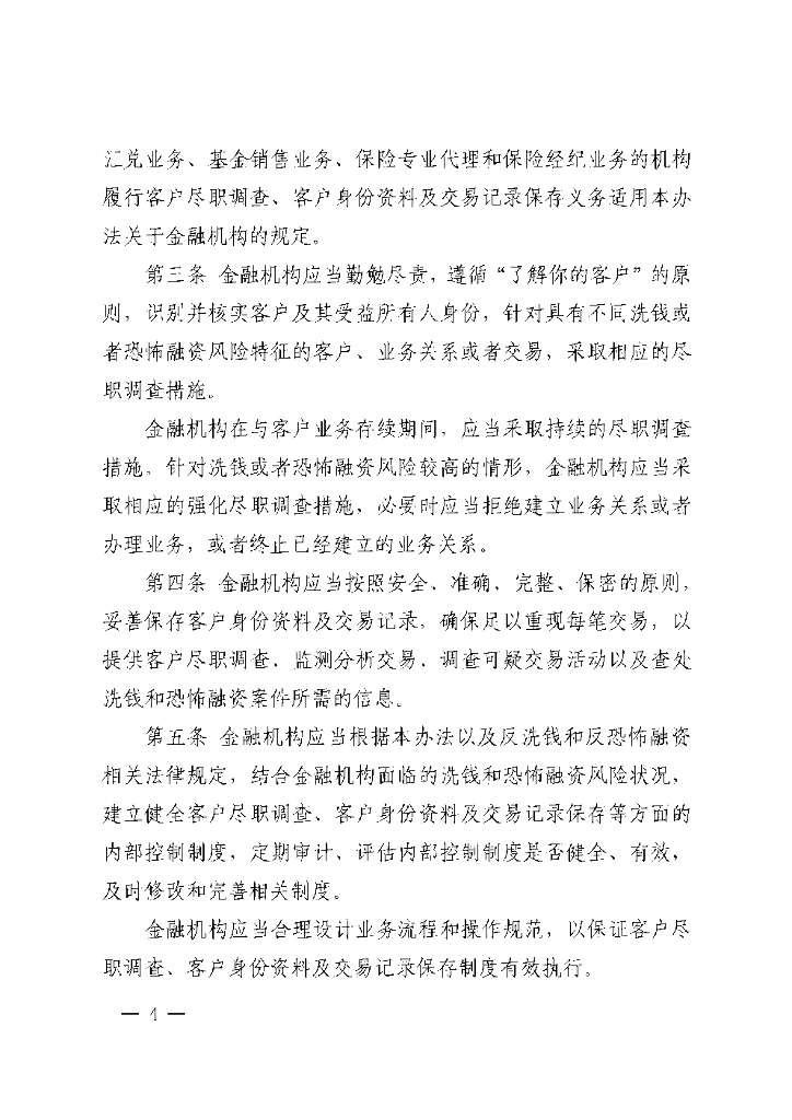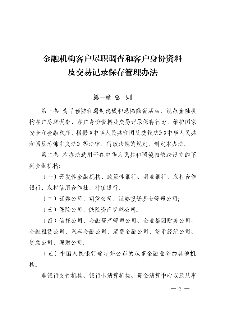 中国人民银行:金融机构客户尽职调查和客户身份资料及交易记录保存管理办法.pdf