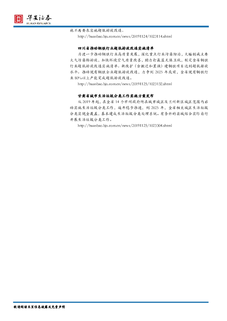 华安证券:环保与公用事业行业每周报告:甘肃省发布城市生活垃圾分类工作实施方案.pdf