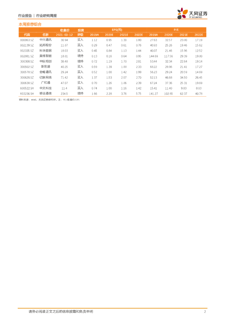 天风证券:通信5G行业研究周报:快速渗透ARPU提升明显,看好5G建设和应用发展.pdf
