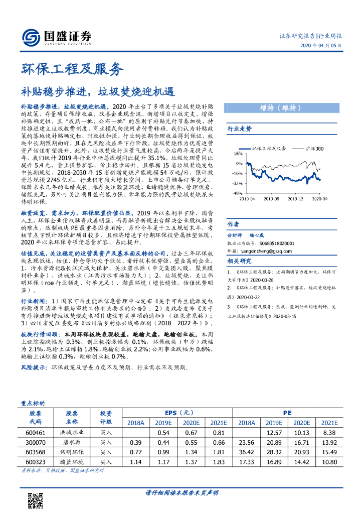 国盛证券:环保工程及服务行业周报:补贴稳步推进,垃圾焚烧迎机遇.pdf