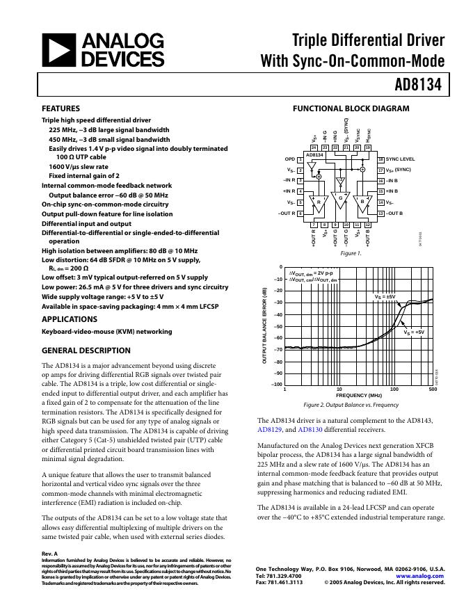 ANALOG DEVICES AD8134 英文产品数据手册 Rev A.pdf