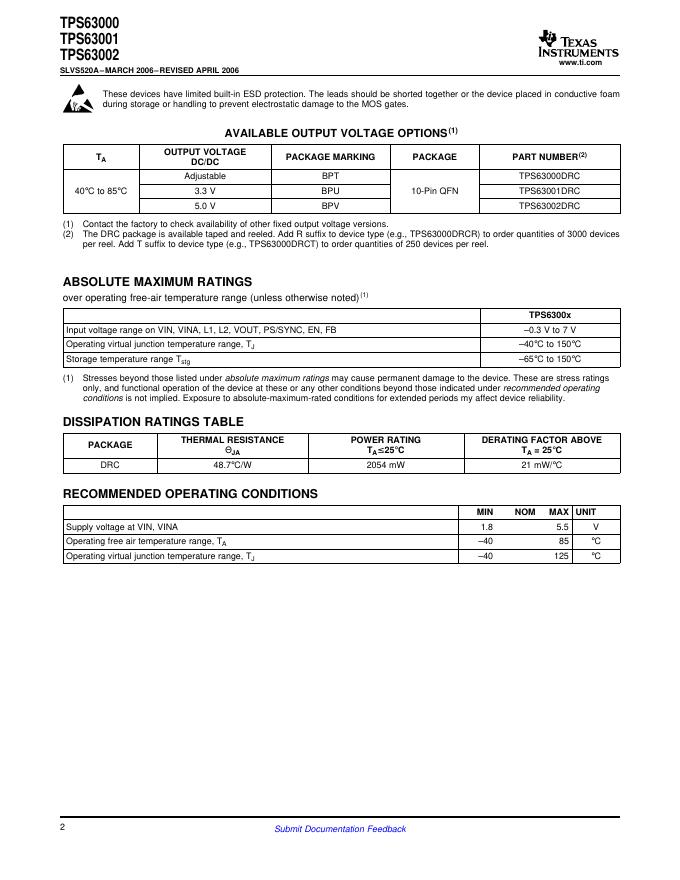 TEXAS INSTRUMENTS - TPS63000 TPS63001 TPS63002HIGH EFFICIENT SINGLE INDUCTOR BUCK-BOOST CONVERTER WITH 1.8-A SWITCHES 数据手册.pdf
