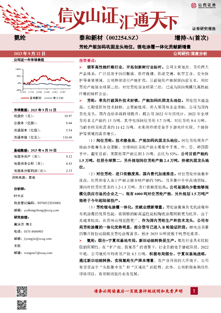 山西证券:泰和新材(002254)-芳纶产能加码巩固龙头地位,锂电涂覆一体化贡献新增量.pdf