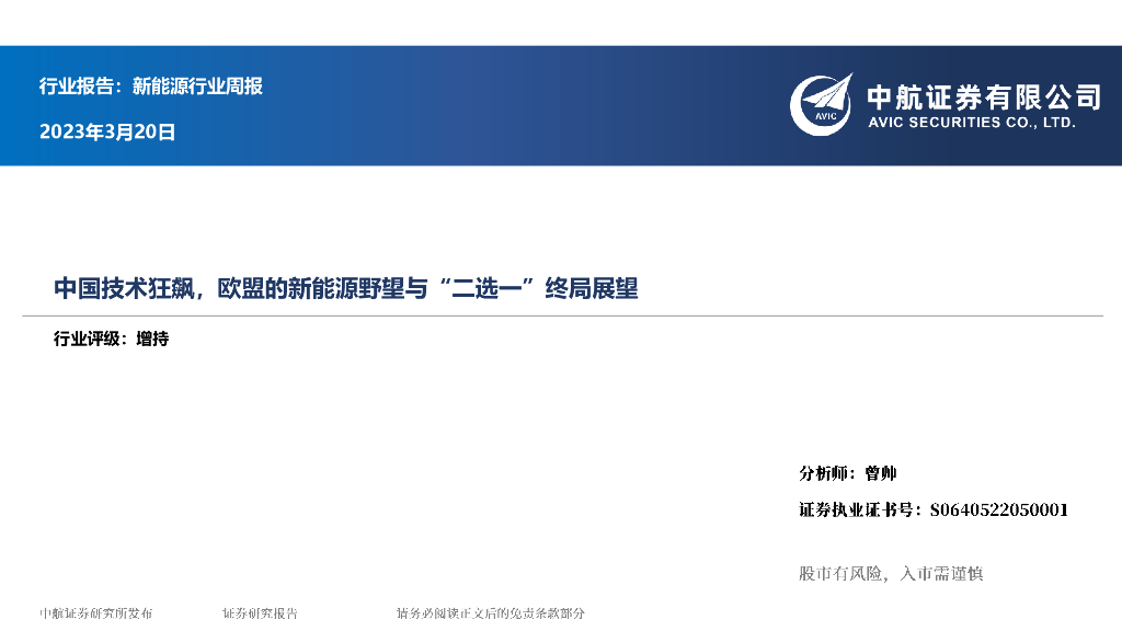 中航证券:新能源行业周报:中国技术狂飙,欧盟的新能源野望与“二选一”终局展望.pdf