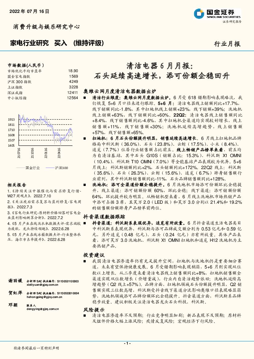 国金证券:清洁电器6月月报:石头延续高速增长,添可份额企稳回升.pdf
