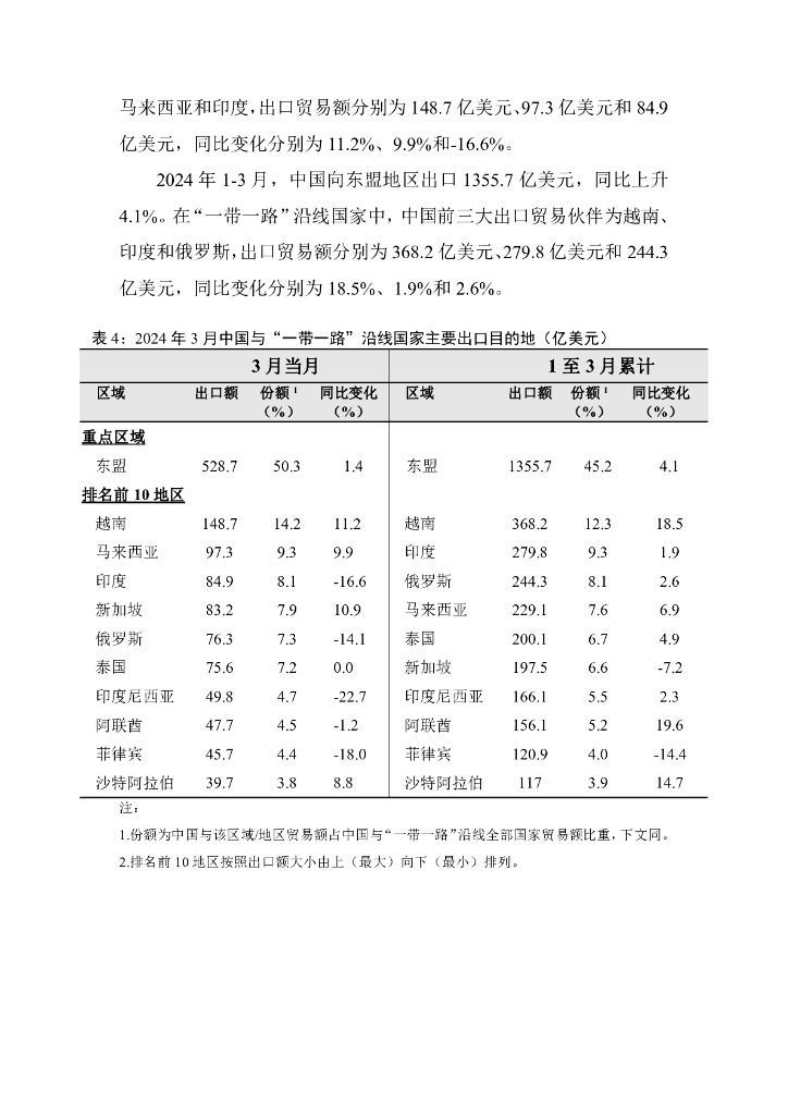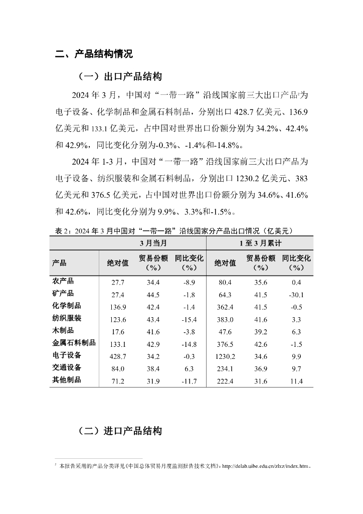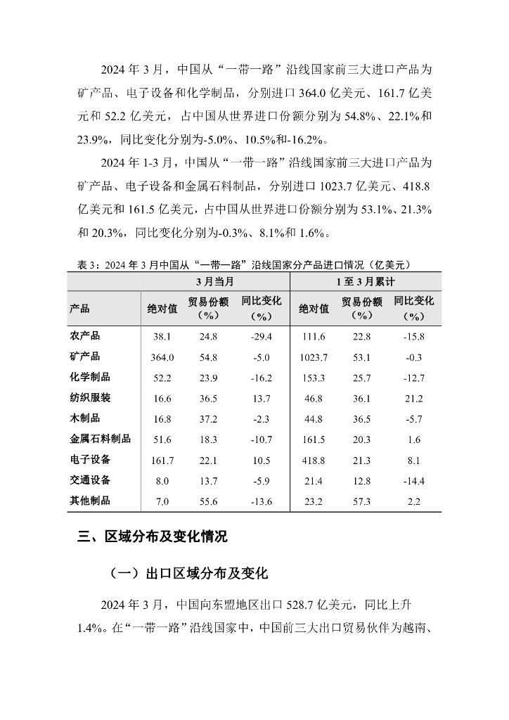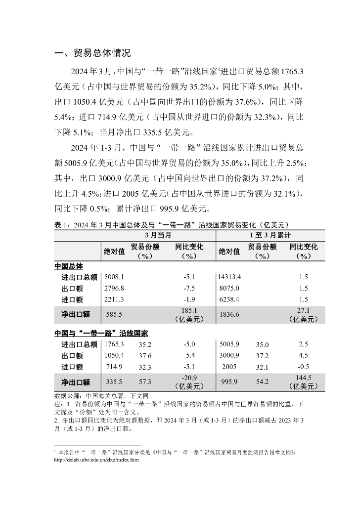 对外经济贸易大学:中国与“一带一路”沿线国家货物贸易月度监测报告(2024年1-3月).pdf