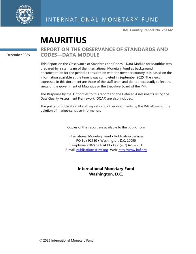 国际货币基金组织:毛里求斯:标准和守则遵守情况报告-数据模块(英文版).pdf