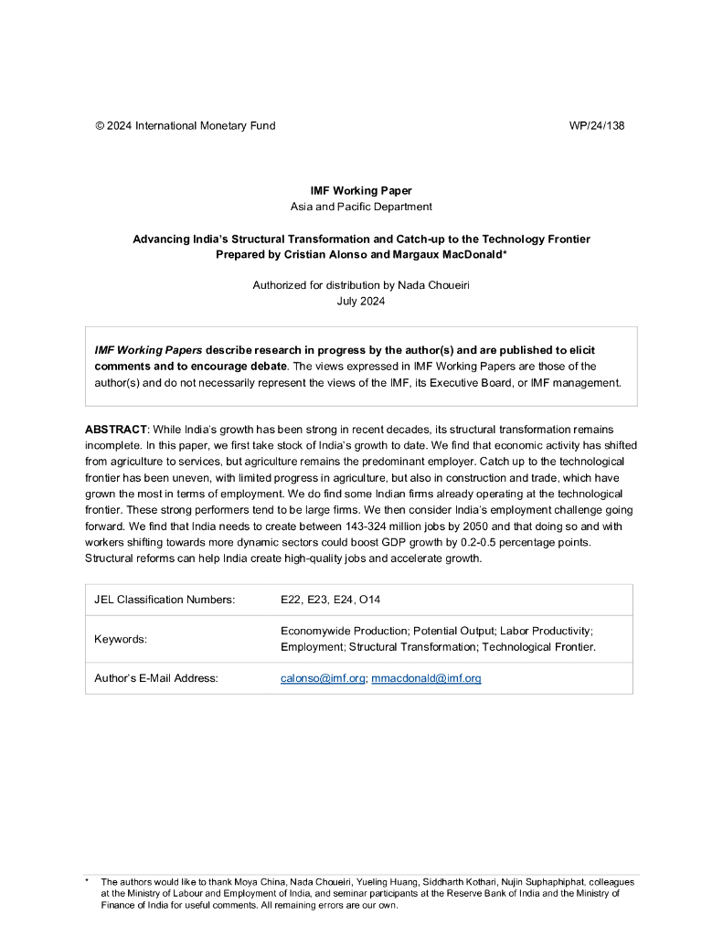 国际货币基金组织:推进印度结构转型,追赶技术前沿(英文版).pdf