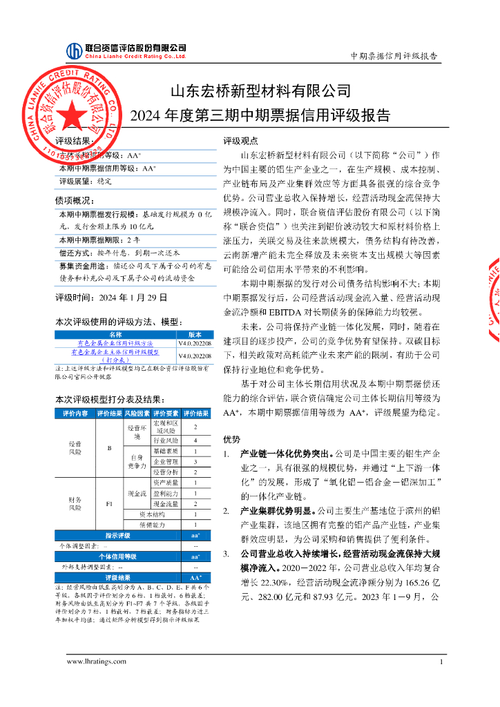 联合资信:山东宏桥新型材料有限公司2024年度第三期中期票据信用评级报告.pdf