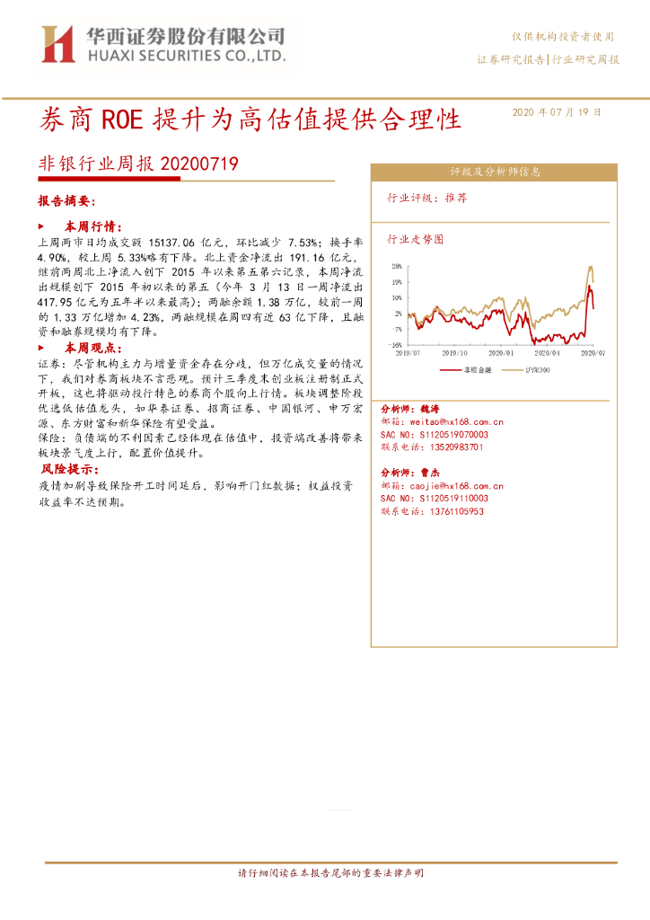 华西证券:非银行业周报:券商ROE提升为高估值提供合理性.pdf