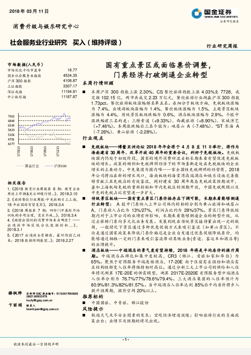 国金证券:社会服务业行业研究周报:国有重点景区或面临票价调整,门票经济打破倒逼企业转型.pdf