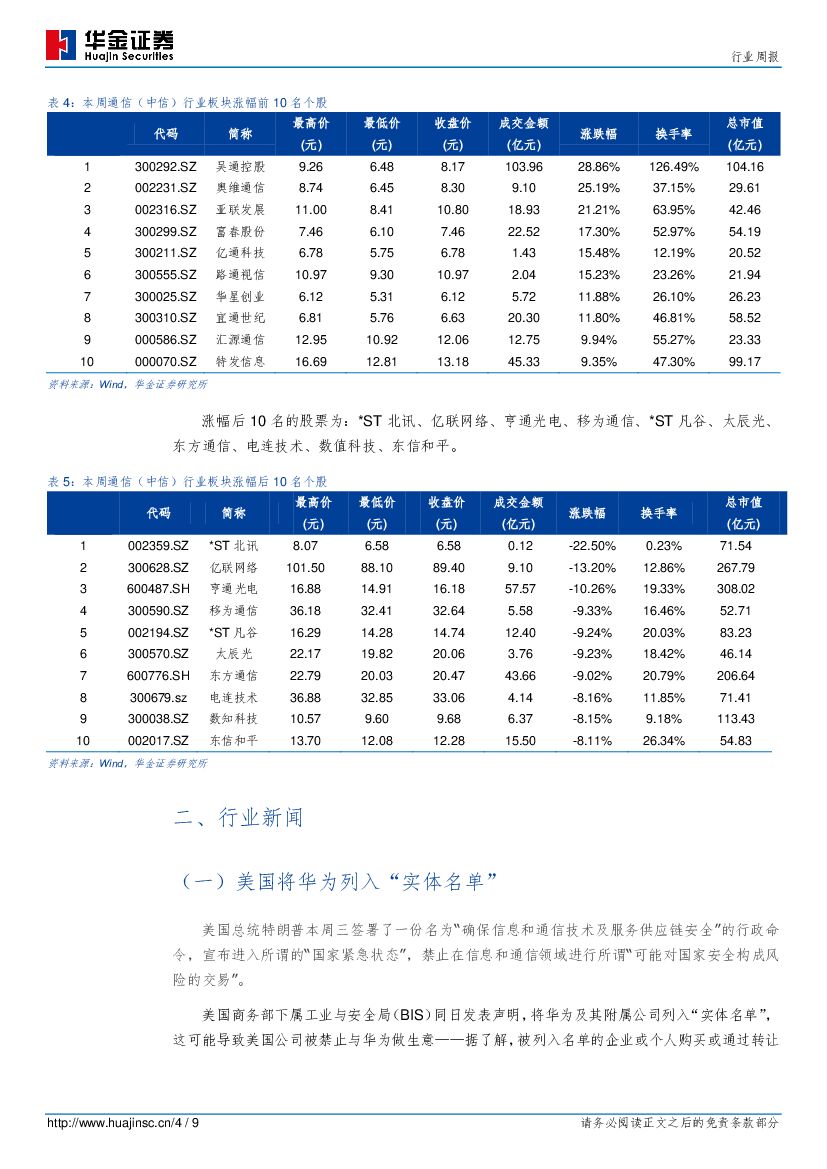 华金证券:通信行业周报:美国将华为列入“实体名单”,电信将首次启动光模块集采.pdf