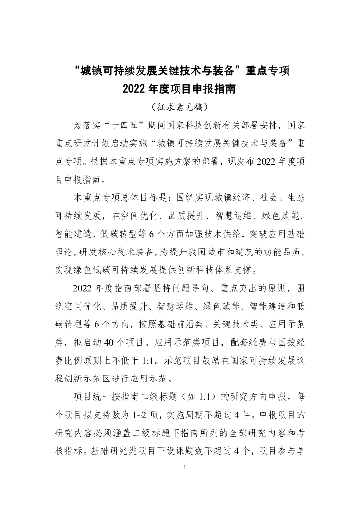 “城镇可持续发展关键技术与装备”重点专项2022年度项目申报指南(征求意见稿).pdf