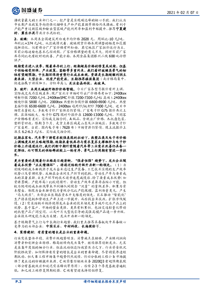 国盛证券:建筑材料行业周报:玻纤价格上涨,继续推荐景气延续的玻纤和出口链条.pdf