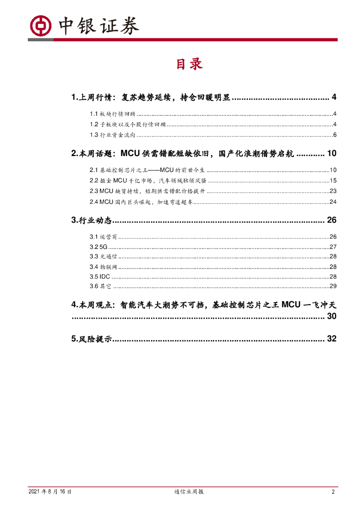 中银证券:通信业周报:终端汽车领域双发力,MCU未来大有可为.pdf