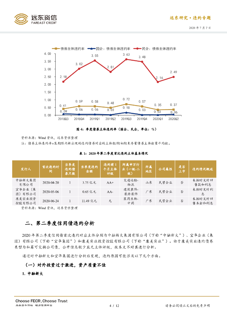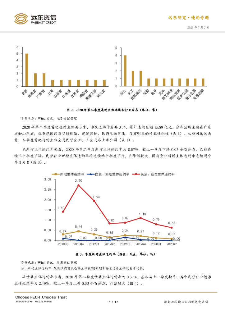 远东资信:新增主体违约率创新低,民企激进投资风险再显现——2020年第二季度信用债违约分析报告.pdf