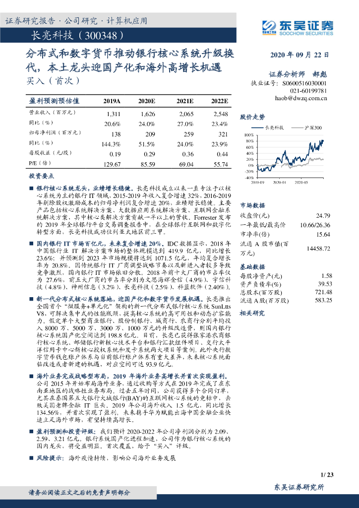 东吴证券:长亮科技(300348)-分布式和数字货币推动银行核心系统升级换代,本土龙头迎国产化和海外高增长机遇.pdf