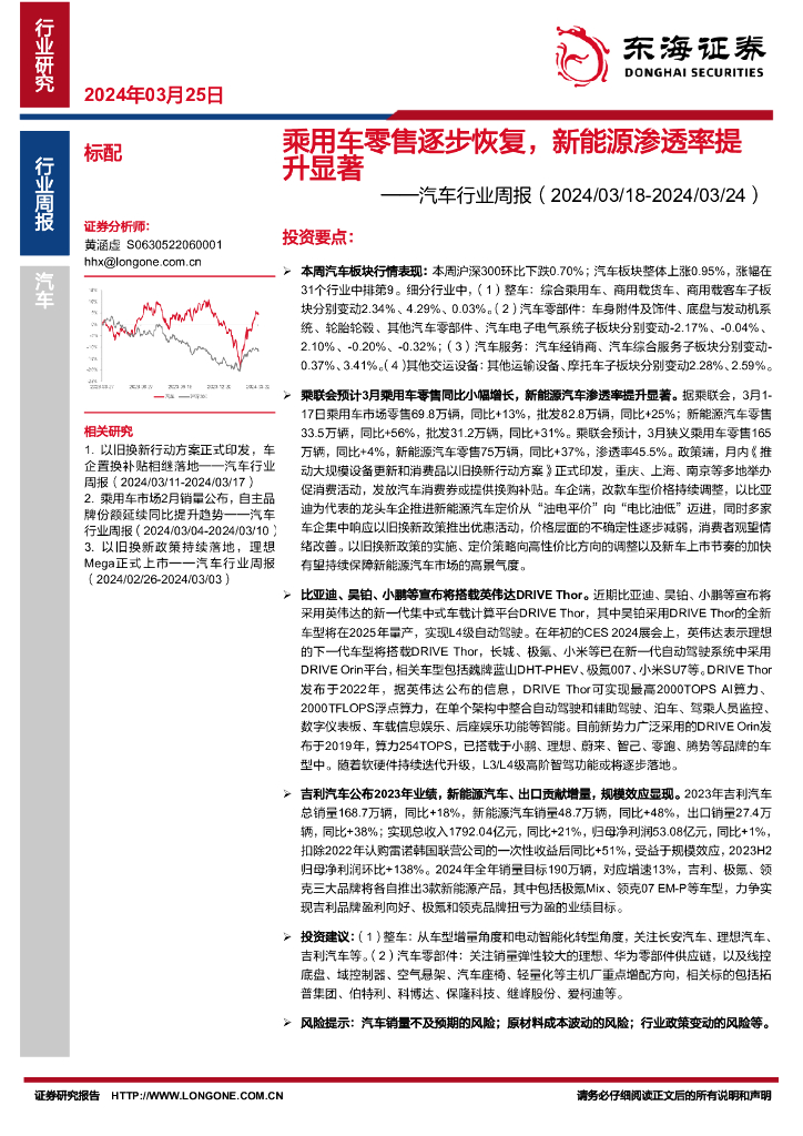 东海证券:汽车行业周报:乘用车零售逐步恢复,新能源渗透率提升显著.pdf
