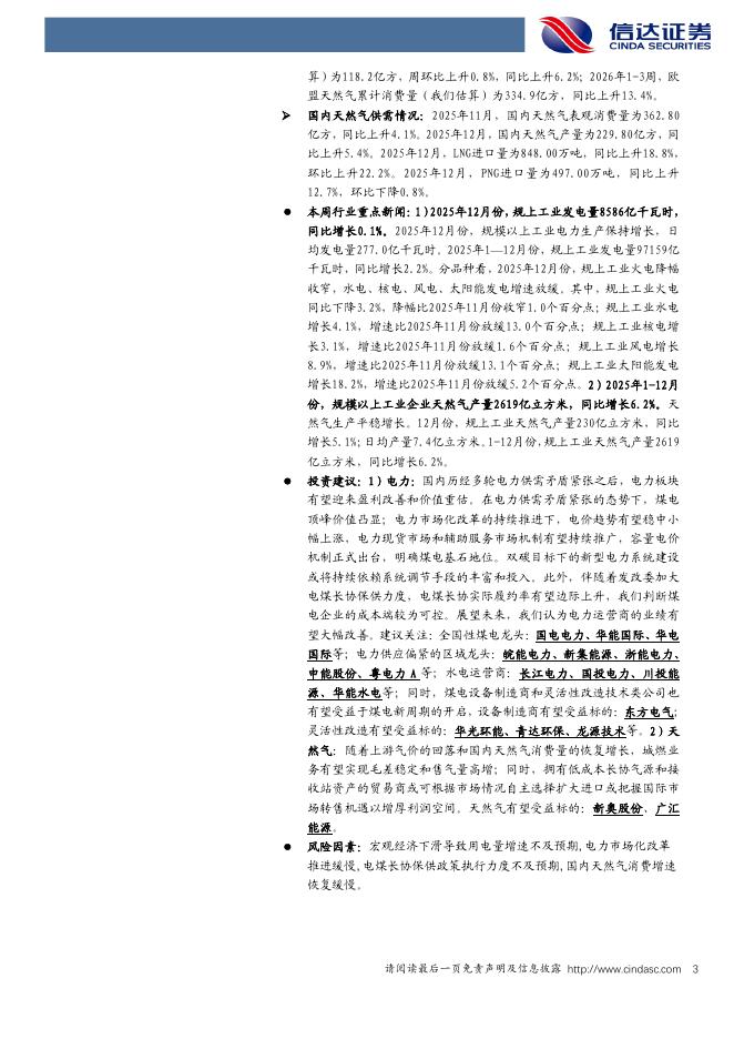 信达证券:公用事业行业—电力天然气周报:2025年我国规上工业发电量同比增长2.2%,寒潮下美国气价周环比大涨.pdf