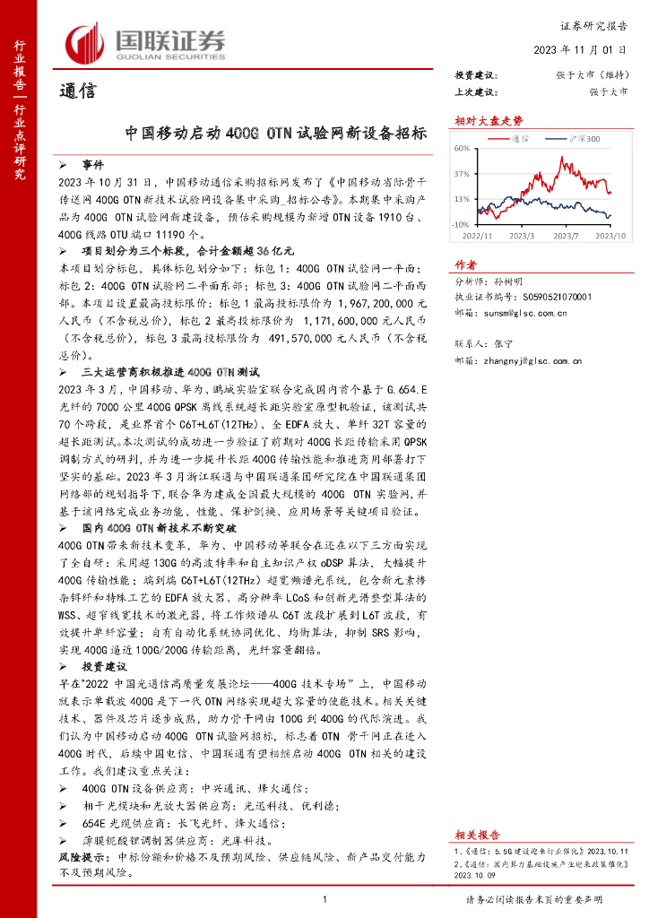 国联证券:通信:中国移动启动400G OTN试验网新设备招标.pdf