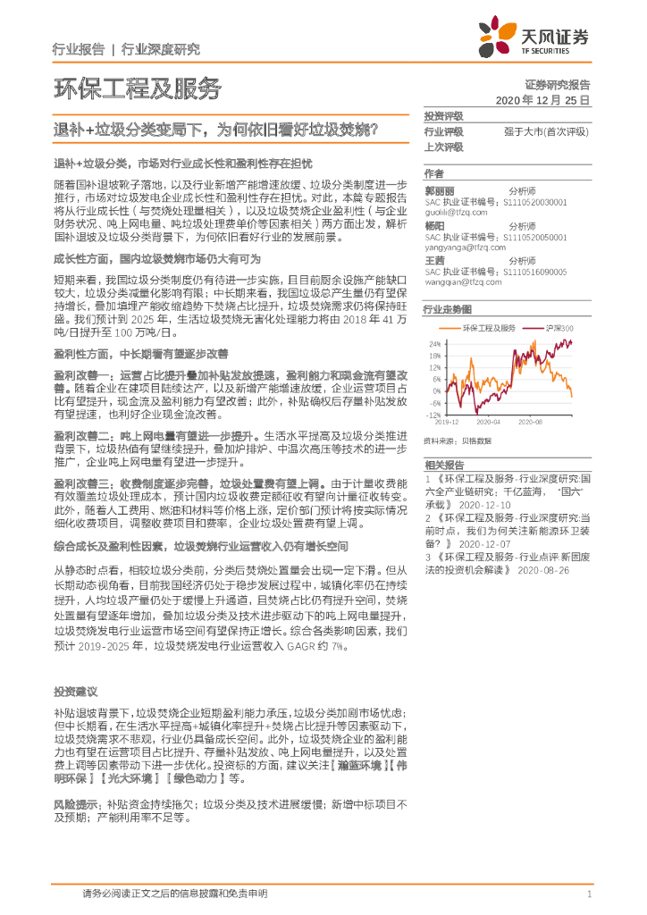 天风证券:环保工程及服务行业深度研究:退补+垃圾分类变局下,为何依旧看好垃圾焚烧?.pdf