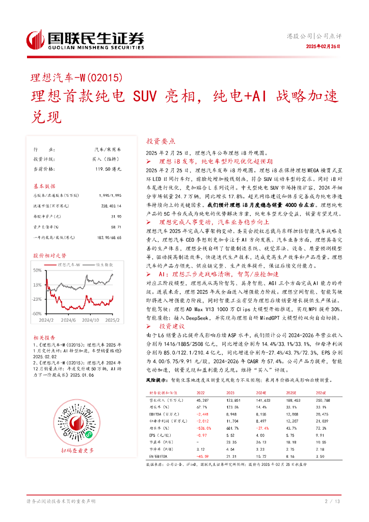 国联民生证券:理想汽车-W(02015)专题报告:首款纯电SUV i8亮相,纯电+AI战略加速兑现.pdf