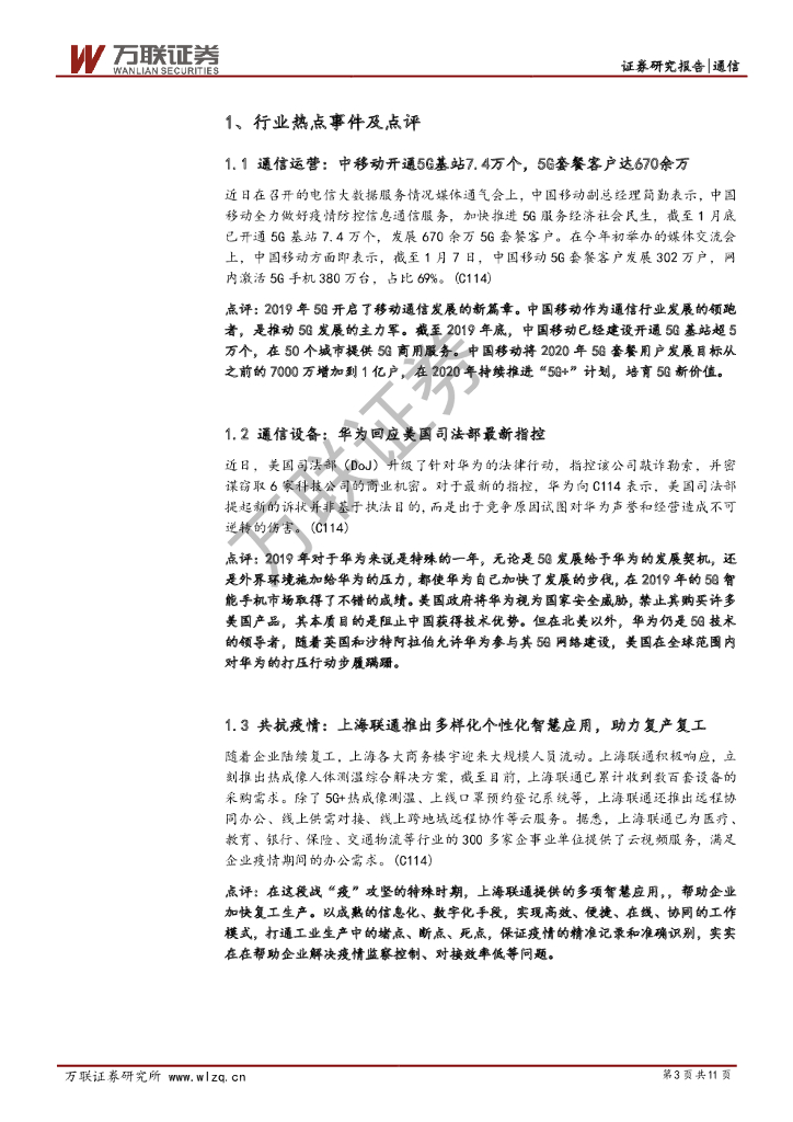 万联证券:通信行业周观点:疫情短期冲击缓解,智慧应用助力复产复工.pdf