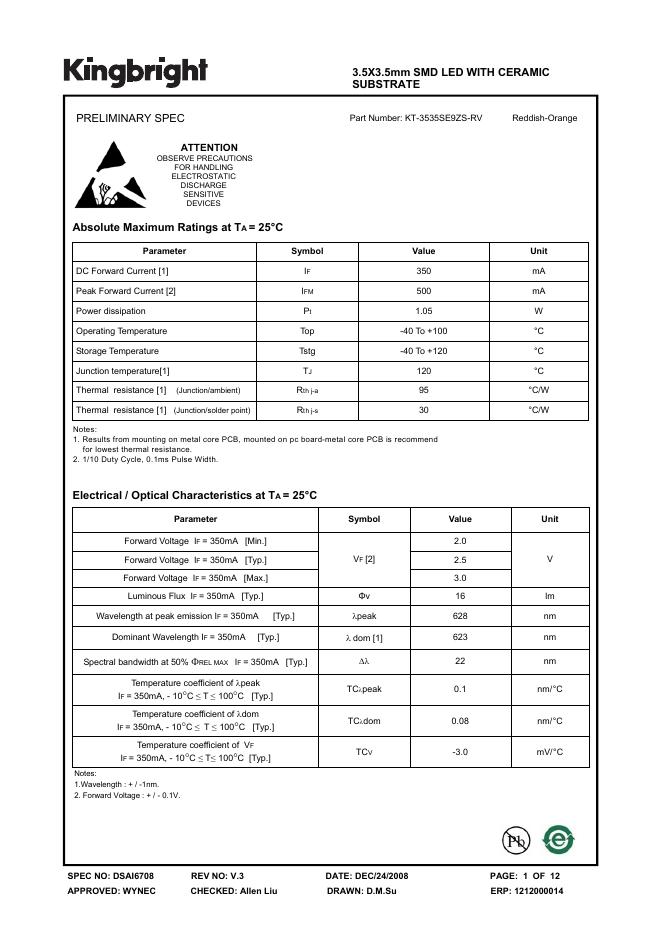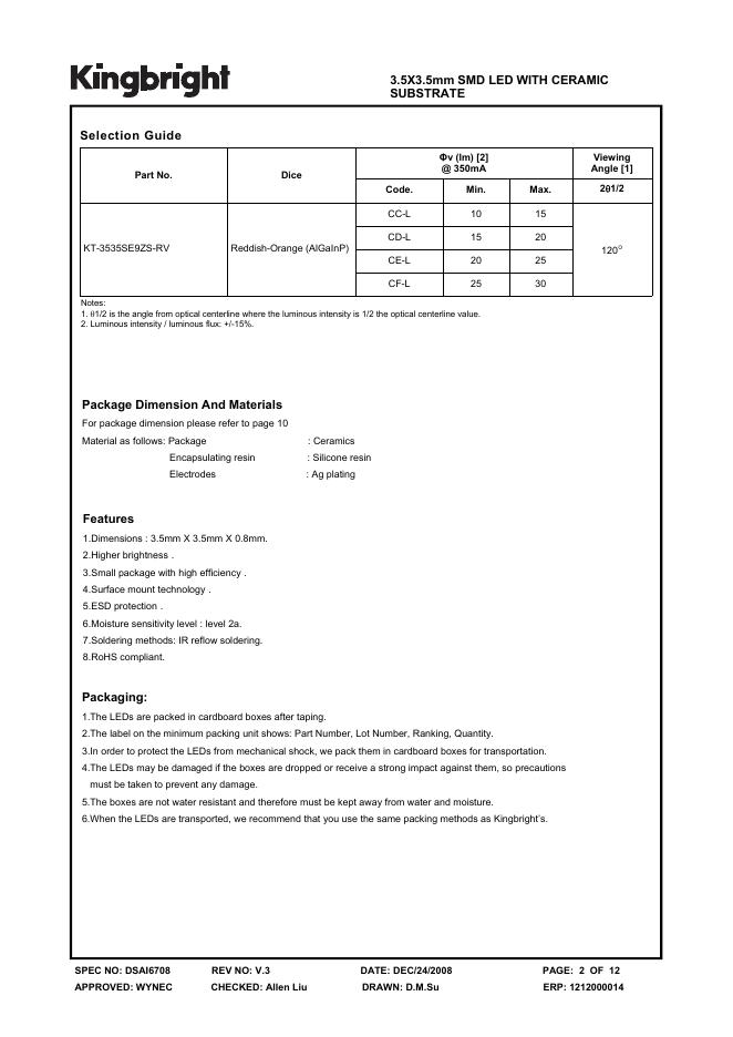 KINGBRIGHT - 3.5X3.5mm SMD LED WITH CERAMIC SUBSTRATE 数据手册.pdf