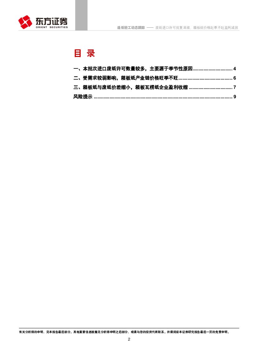 东方证券:造纸轻工行业动态跟踪:废纸进口许可批复延续,箱板纸价格旺季不旺盈利减弱.pdf