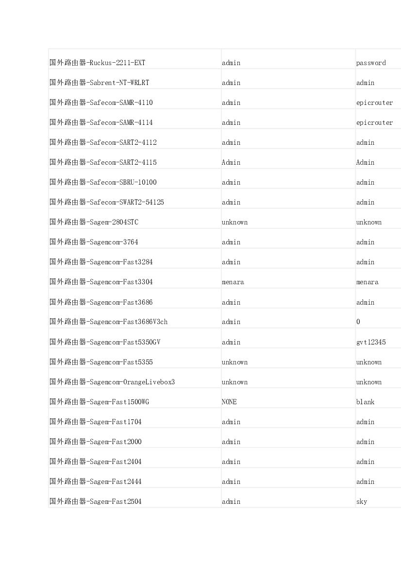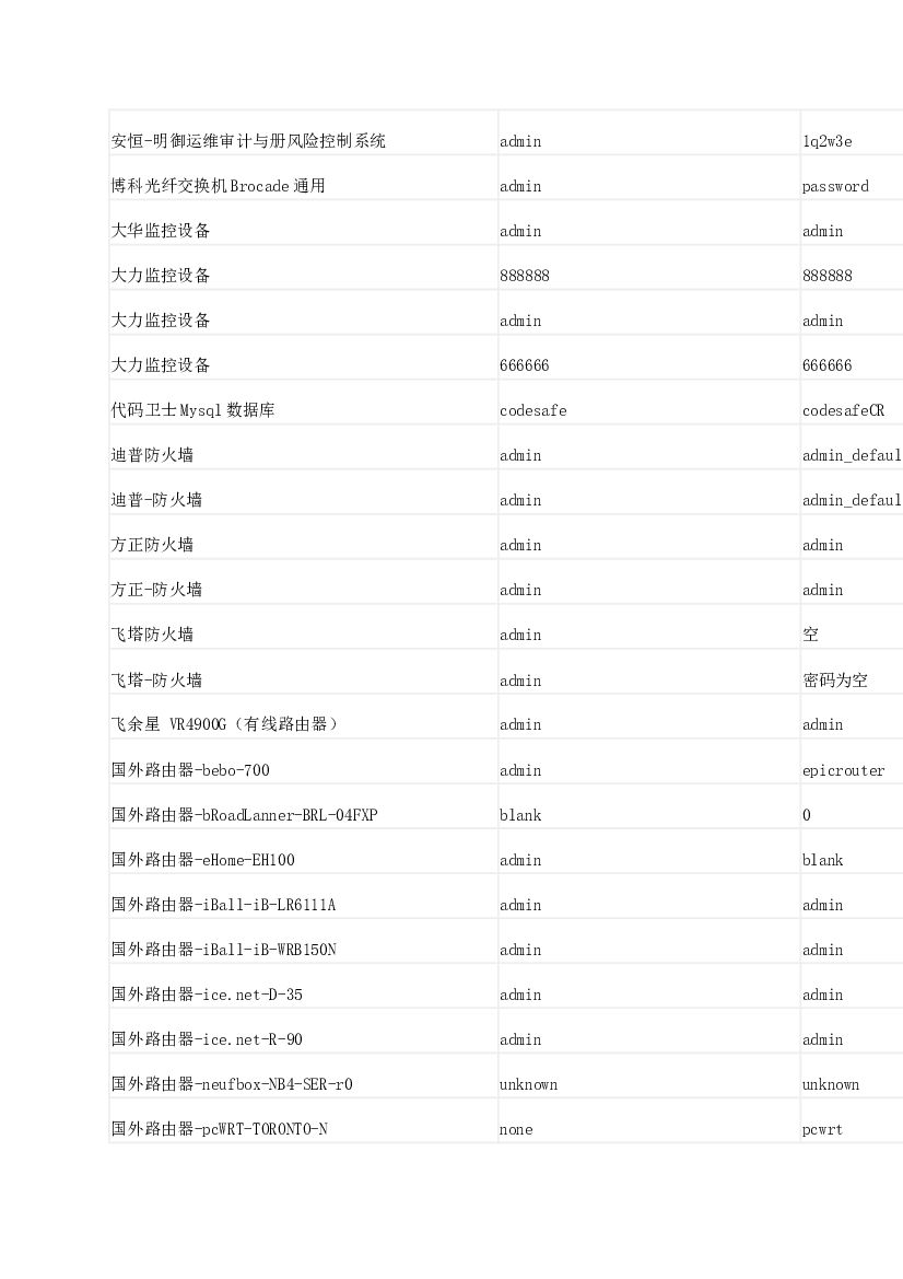 各品牌防火墙/路由器/服务器等安全设备默认密码.doc