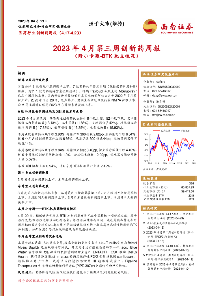 西南证券:医药行业创新药周报:2023年4月第三周创新药周报(附小专题-BTK靶点概况).pdf