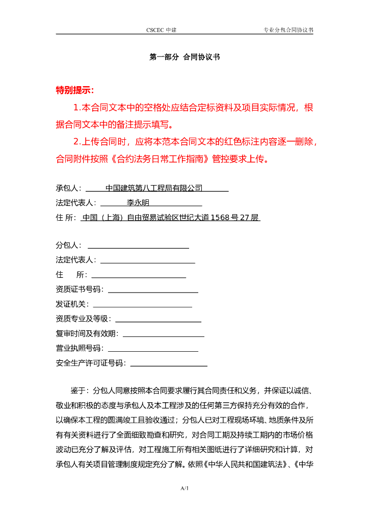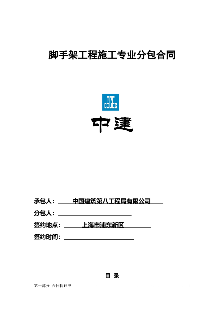 中建脚手架工程施工专业分包合同范本.doc