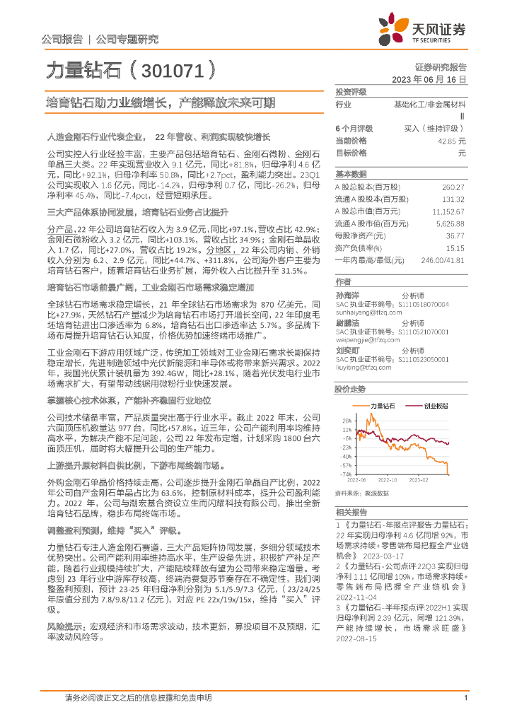 天风证券:力量钻石(301071)-培育钻石助力业绩增长,产能释放未来可期.pdf