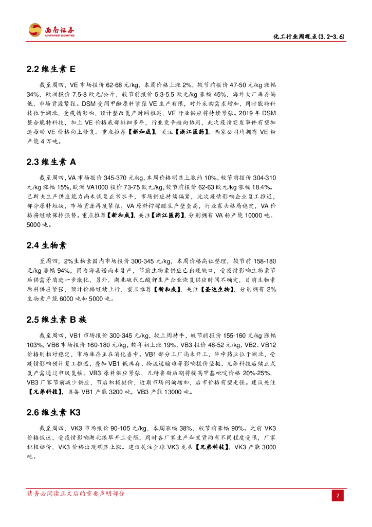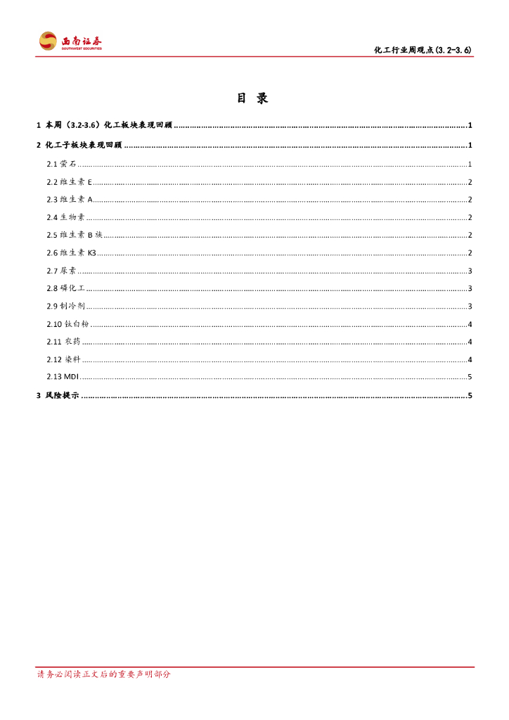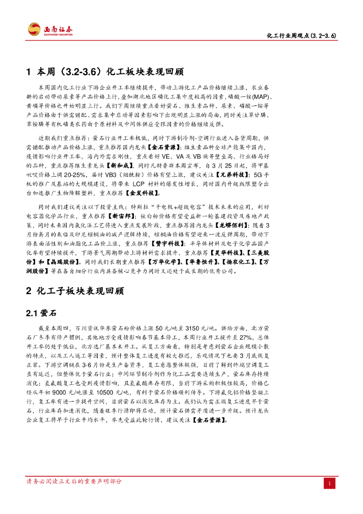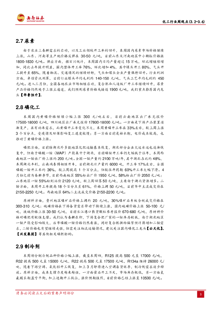 西南证券:化工行业周观点:继续看涨萤石、维生素品种,尿素、MAP持续受益春耕行情.pdf