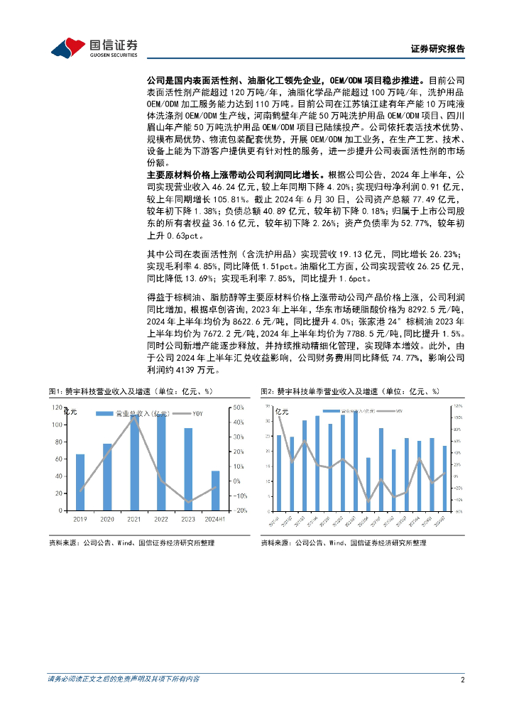 国信证券:赞宇科技(002637)-2024上半年归母净利润同比提升106%,看好OEM产能放量贡献利润.pdf