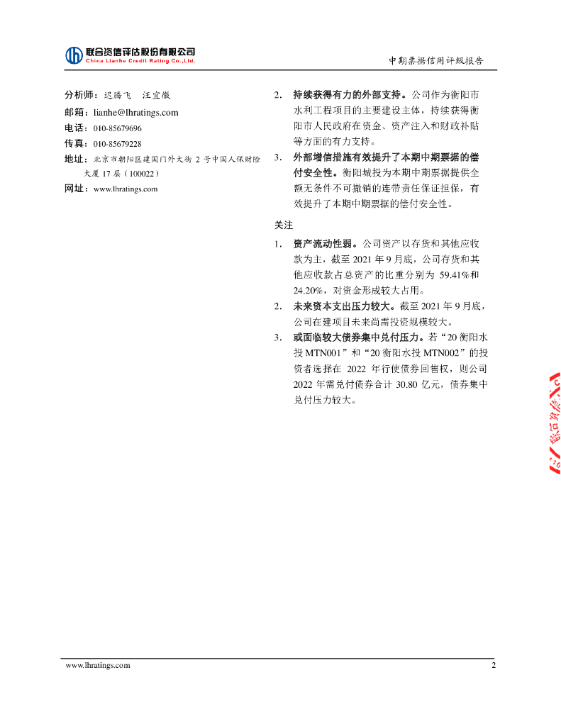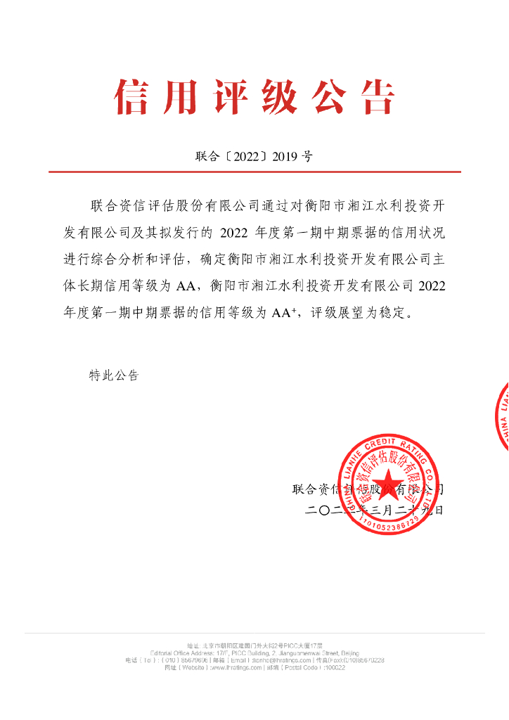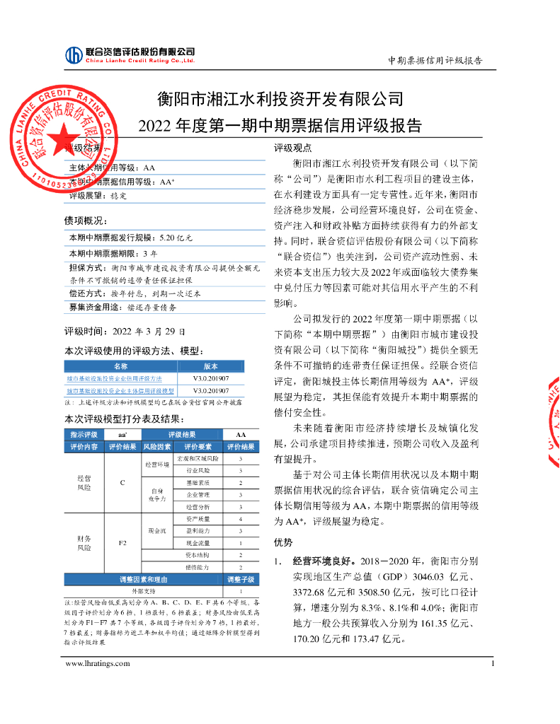 联合资信:衡阳市湘江水利投资开发有限公司2022年度第一期中期票据信用评级报告.pdf