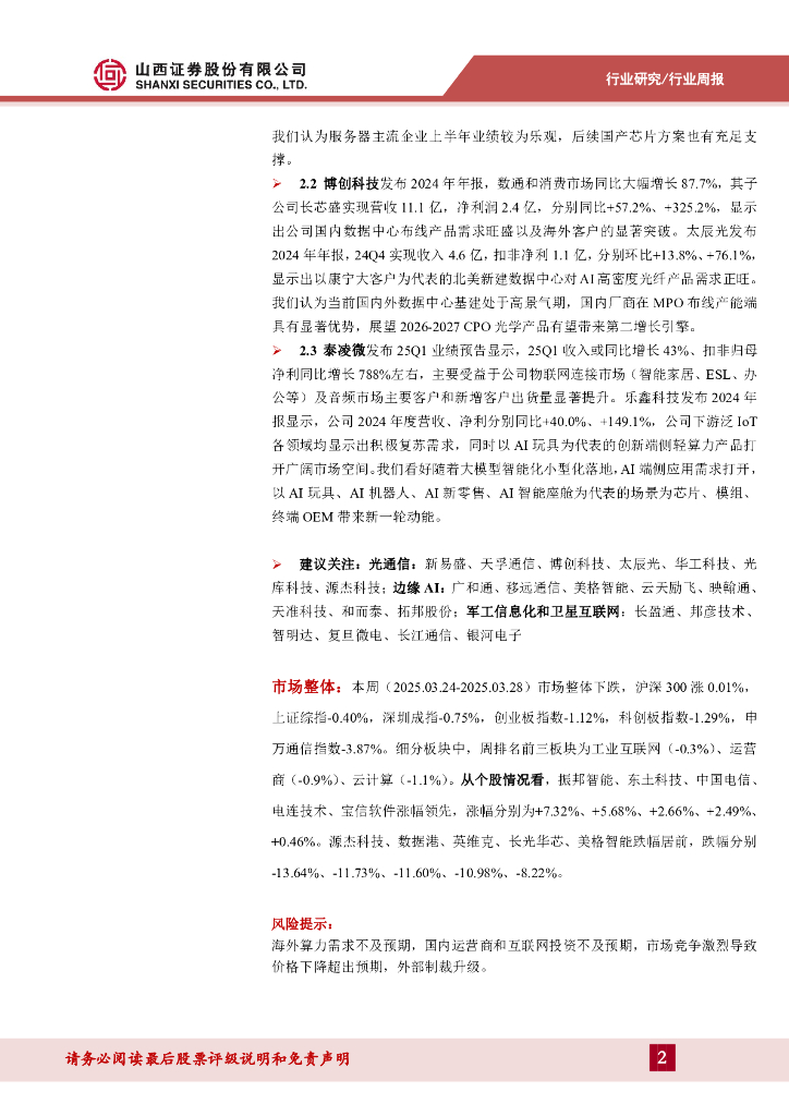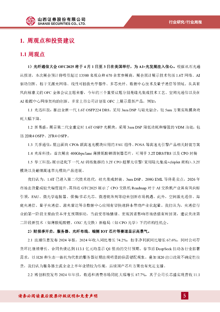 山西证券:通信周跟踪:OFC2025即将召开,关注财报季高景气板块.pdf