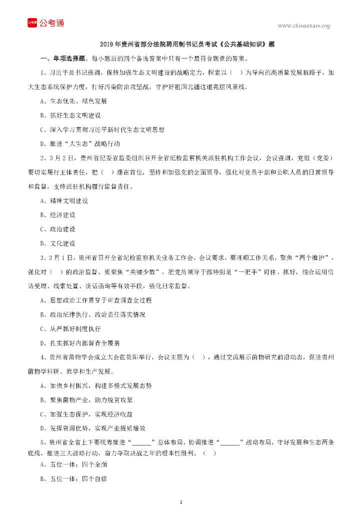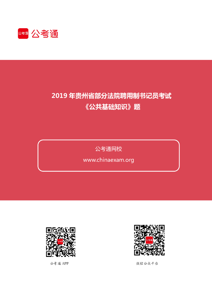 2019年贵州省部分法院聘用制书记员考试《公共基础知识》题.pdf
