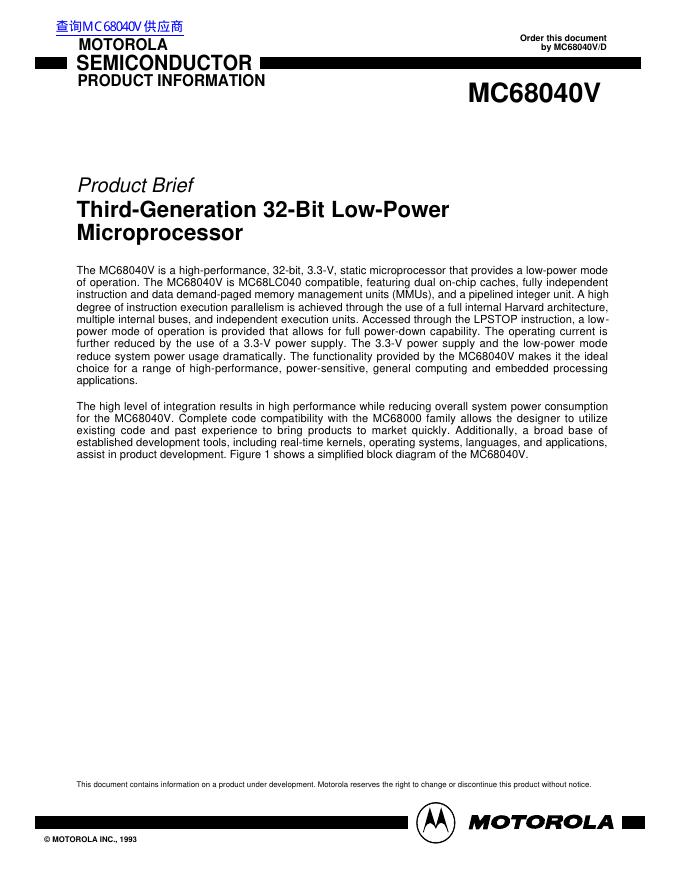 MOTOROLA Semiconductor MC68040V 数据手册.pdf