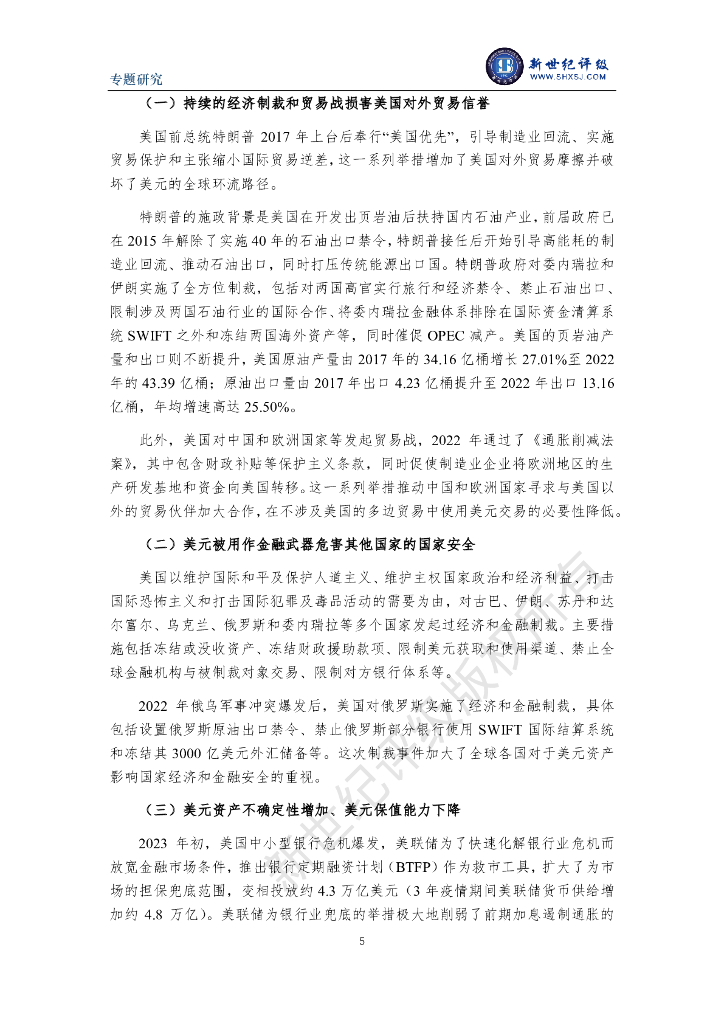 新世纪评级:“去美元化”趋势对美国及全球经济影响报告.pdf