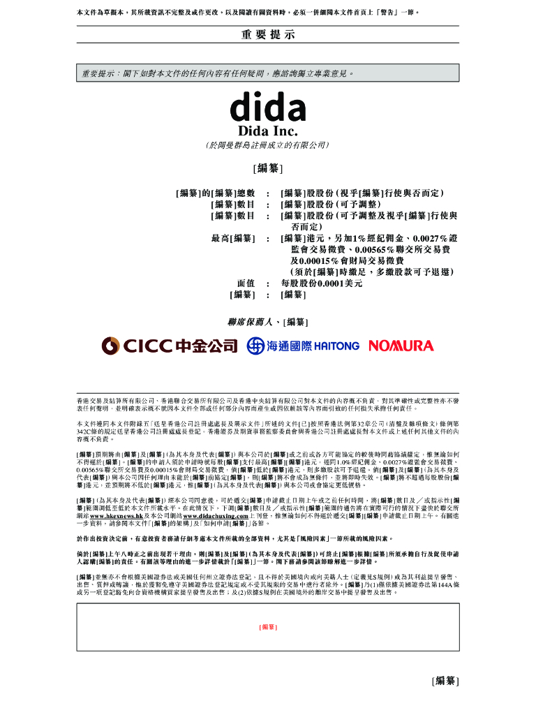 Dida Inc嘀嗒出行港交所IPO上市招股说明书2023:计划集资2亿美元.pdf