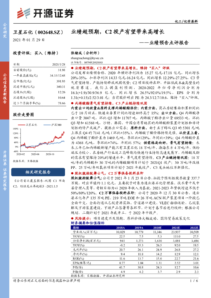 开源证券:卫星石化(002648)-业绩预告点评报告:业绩超预期,C2投产有望带来高增长.pdf