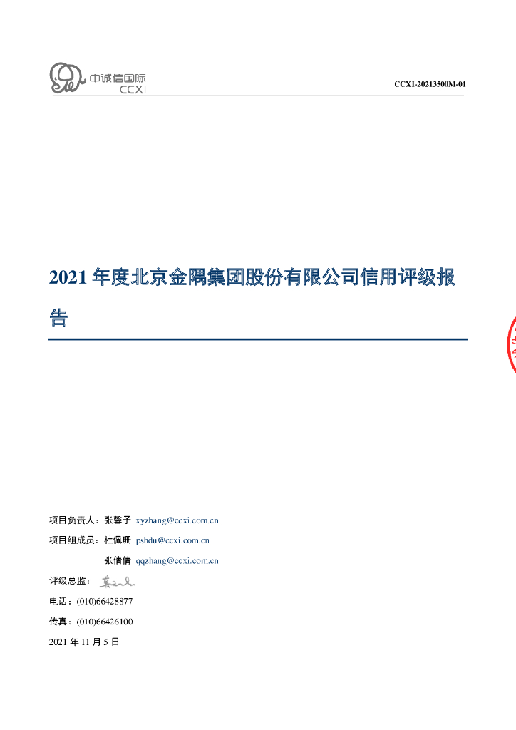 中诚信:北京金隅集团股份有限公司2021年度信用评级报告.pdf