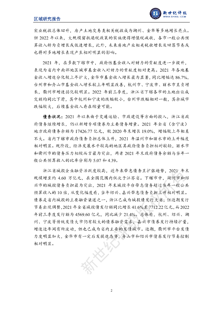 新世纪评级:浙江省及下辖各市经济财政实力与债务研究(2022).pdf