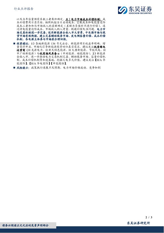 东吴证券:公用事业行业点评报告:山东136号文正式印发,新能源收益率确定性提升&电力市场交易机制健全.pdf